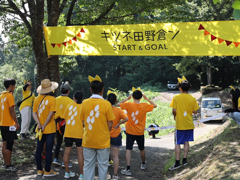 田野倉ンでは集落に伝わる民話「三九郎狐」にちなみ、みんなでキツネの仮装をして自然の中を走ります。