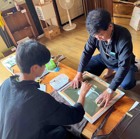 今回の滞在でも、大工の小坂さん(池田勝則氏)、シルクスクリーン名人のいんきょさん(池田輝夫氏)、お隣の渡辺さん(渡辺正幸氏)、ていごろうさん(池田勝氏)など、現地のエキスパートの方々にお世話になり、作業を進めることができ、本当に感謝しています。