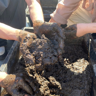 土は「黒土」「赤玉土」「鹿沼土」の3種類を混ぜて作ります。そこに水を入れて平らに固めていき、そのあと表面の土だけを柔らかくする「しろかき」を行います。赤玉土が水に浮いてきてしまうので、一粒一粒つぶして沈めていく作業が大変でした. . .