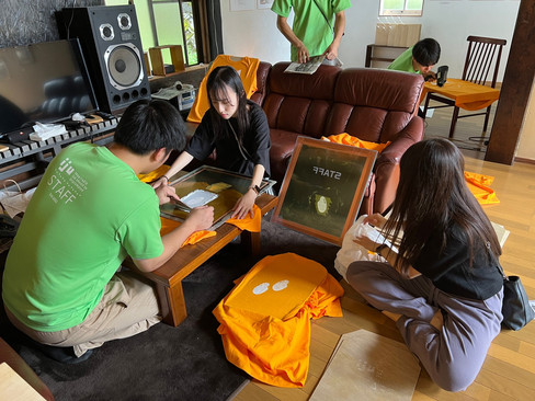 当日着用したTシャツは、集落の方に教わりながら自分たちで刷ったものです。田野倉ンは芸術祭が開催する年に行われているのですが、参加する度にTシャツの裏に印刷された米粒が増えていくという、遊び心も忘れない仕様となっています。